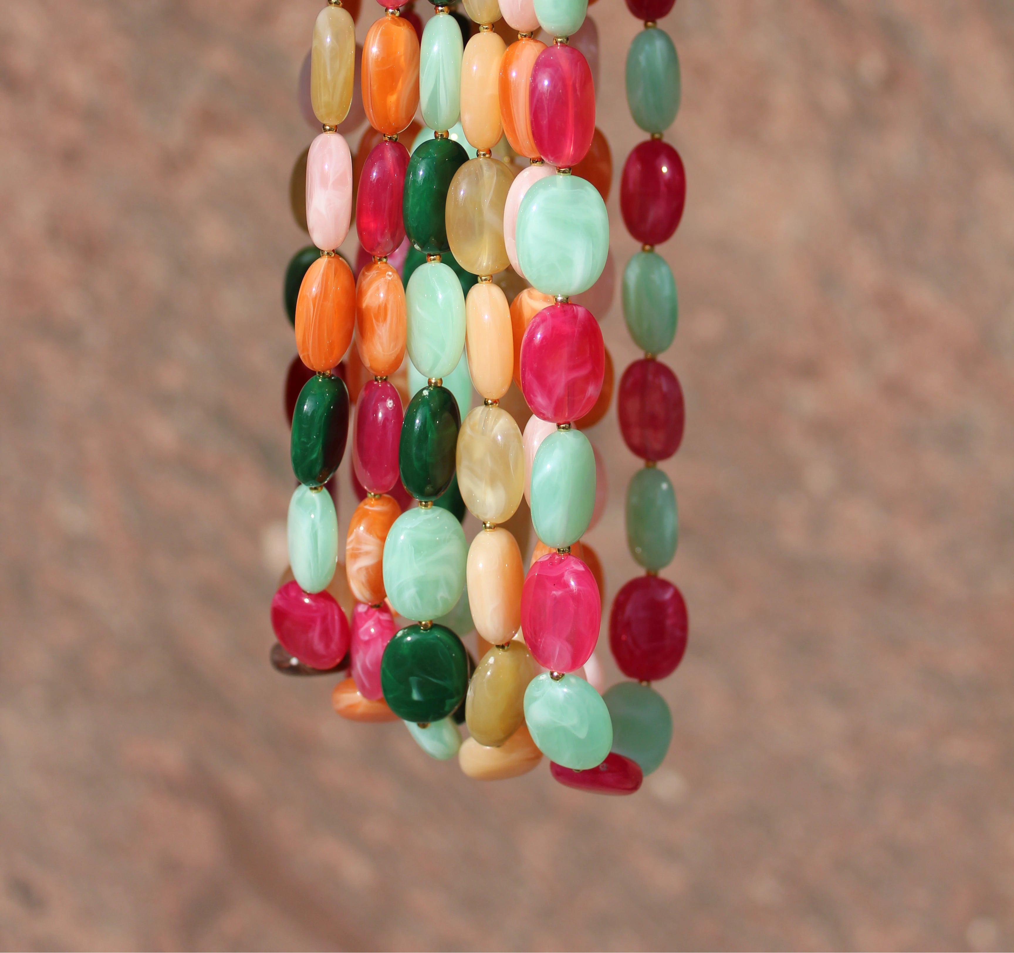 I gioielli con perle chunky sono super trendy! Le perle grandi e colorate donano a ogni look un tocco giocoso e sorprendente. Perfetti da abbinare o come pezzo forte sui tuoi basic preferiti.