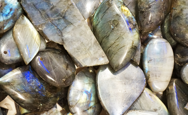 La labradorite, spesso chiamata pietra della trasformazione, si dice stimoli l’intuizione, protegga dalle energie negative e evochi un senso di meraviglia e possibilità. I suoi colori variano dal grigio al verde.